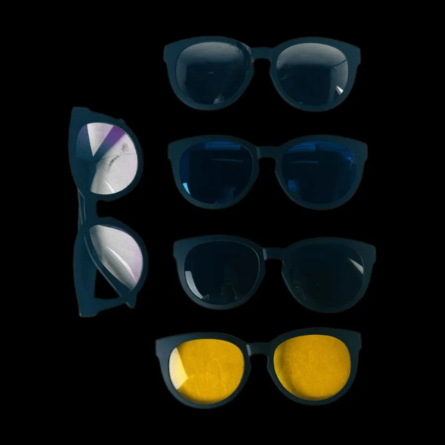نظارة شمسية ذات شكل مميز وبسيط بهيكل خارجي من البلاستيك القوي مع وجود 4 عدسات باللون مختلفة مناسبة للاستخدام في الليل أو النهار